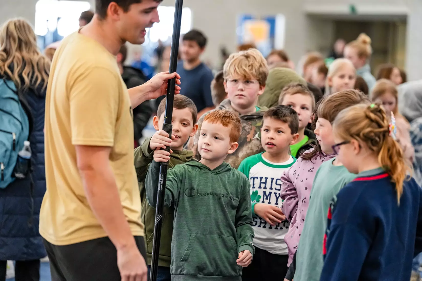 FORT WAYNE, Ind. – 702 students from J.E. Ober Elementary School in Garrett, Indiana visited Purdue Fort Wayne on March 16-17 to receive a track and field throws demonstration by Miss Trunchbull from the Roald Dahl book Matilda. Well, kinda.